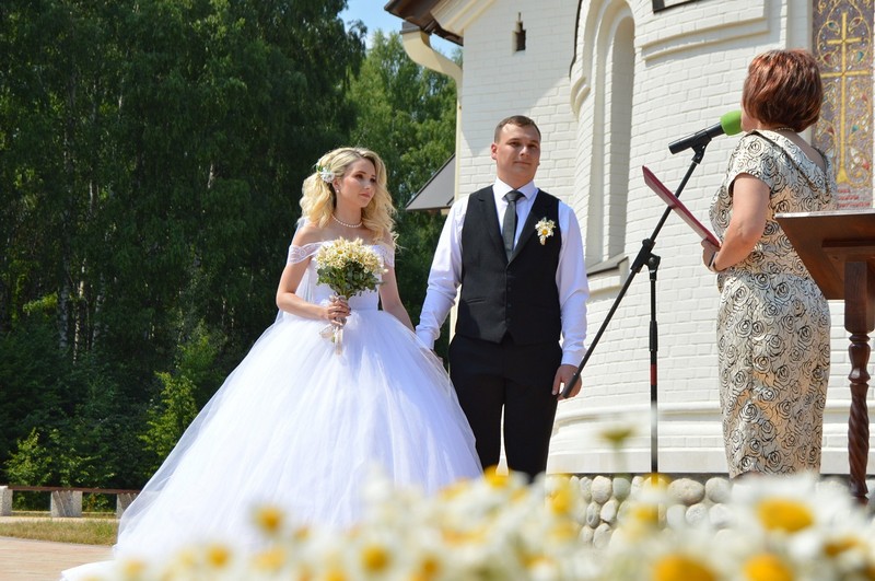 Как отметил епископ Касимовский и Сасовский Василий, эти пары – пример для молодых людей, которые только создали семью или планируют вступить в брак. Например, для Анастасии Какушкиной и Владимира Кизенко. Они решили 8 июля узаконить свои отношения. Торжественную регистрацию брака провели тут же, у храма святых Петра и Февронии. Под аплодисменты собравшихся молодожены обменялись кольцами.