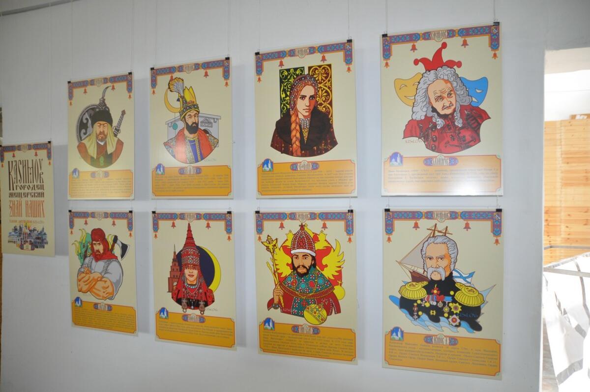 В экспозицию вошло около 30 картин с изображением и кратким описанием жизни знаменитых земляков, прославивших Касимов и Касимовский район в разные годы и века. Работы выполнены в технике компьютерной графики. Здесь можно увидеть портреты писателей Бориса Шишаева, Евгения Маркина, правителя города Шах-Али-хана, царицы Сююмбике, академика Владимира Уткина, космонавта Владимира Аксёнова, представителей знатных родов Олениных, Обуховых, Шакуловых, Наставиных, царскую невесту Евфимию Всеволожскую и других.
