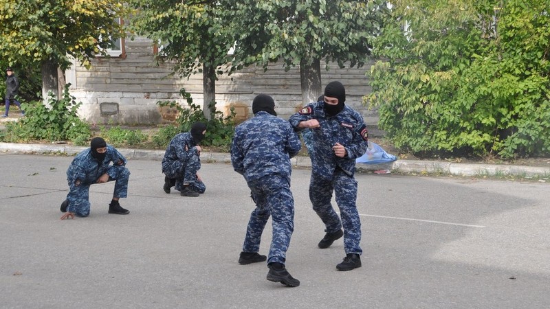 Затем на площадке перед городским Дворцом культуры с показательным выступлением выступили курсанты Рязанского филиала Московского университета МВД России им. В.Я. Кикотя. Студенты продемонстрировали приемы рукопашного боя, процесс задержания условных преступников с применением табельного оружия.