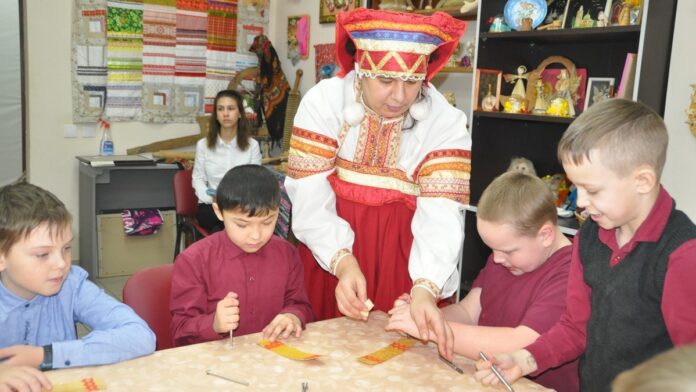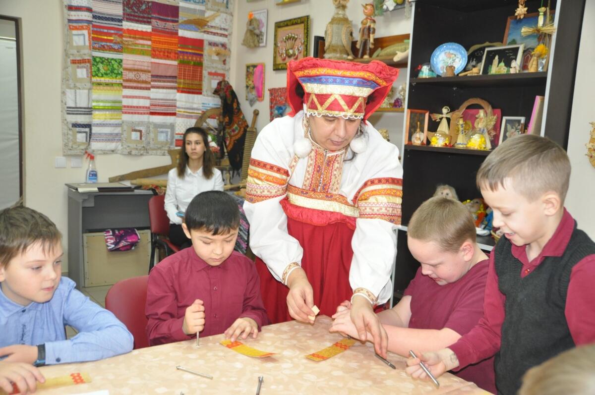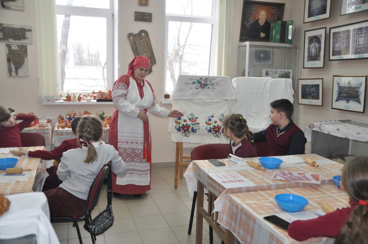 В Центре культурного развития прошли мастер-классы. Светлана Баурова учила школьников мастерить закладку для книг из бересты с орнаментом касимовского рушника. Юлия Булыгина с второклассниками лепила из глины каравай и рушник.