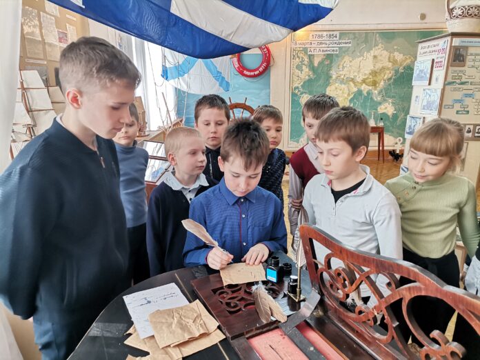 В школе прошли конкурс рисунков «Традиция побеждать», онлайн-квест «Хранители морских традиций», спортивные состязания на кубок имени Авинова. Кроме того, ежедневно проводились экскурсии по школьному музею, во время которых гости не только получали сведения о жизни адмирала Авинова, но имели возможность почувствовать себя моряками XIX века! Юные экскурсанты вращали штурвал корабля, звонили в колокол-рынду, пробовали зарядить почти настоящий фальконет (пушку малого калибра), а также писали письма гусиным пером и чернилами.