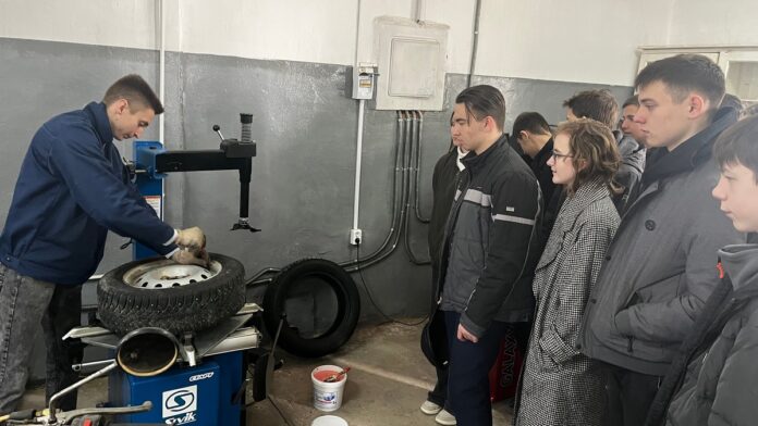 В автомобильной мастерской ребятам показали мастер-класс по балансировке колес, рассказали об устройстве и принципе действия подъемника, мальчики смогли поработать пневматическим гайковертом.