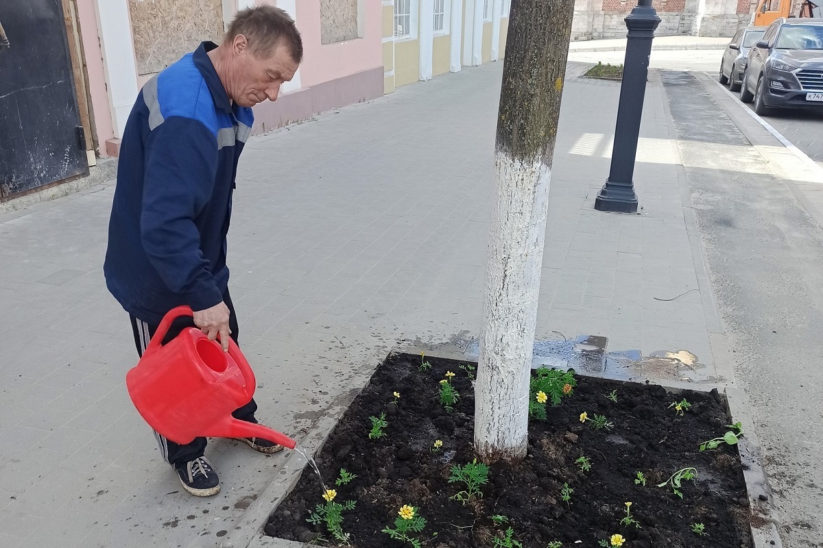 Также в Касимове на клумбы высаживают цветы. По данным муниципального предприятия «Касимовсервис» в этом году планируется высадить 12 тысяч бархадцев, сальвий, агератума и других растений. Рассаду цветов вырастили сотрудники станции юных натуралистов. Кстати, предприниматели и здесь не остались в стороне. В историческом центре города они высадили цветы на прикорневых кругах лип, растущих перед их магазинами.