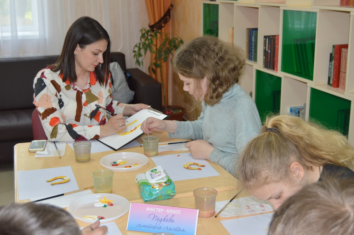 В фойе проходили мастер-классы по изготовлению сувениров из лозы, семейного оберега из ткани и другие. Также сотрудники центра «Доверие» организовали тренинг «Психологическая мастерская», направленный на сплочение. На выставке работ «Семейное увлечение» можно было увидеть разливные изделия родителей и детей. Семья Касьяновых представила изделия из бисера и лозы. Семья Денисовых – вязаные сувениры и декоративные панно, куклы из ваты, техническое моделирование. Семья Черновых презентовала гостям резные художественные изделия, выполненные из фанеры и древесины.