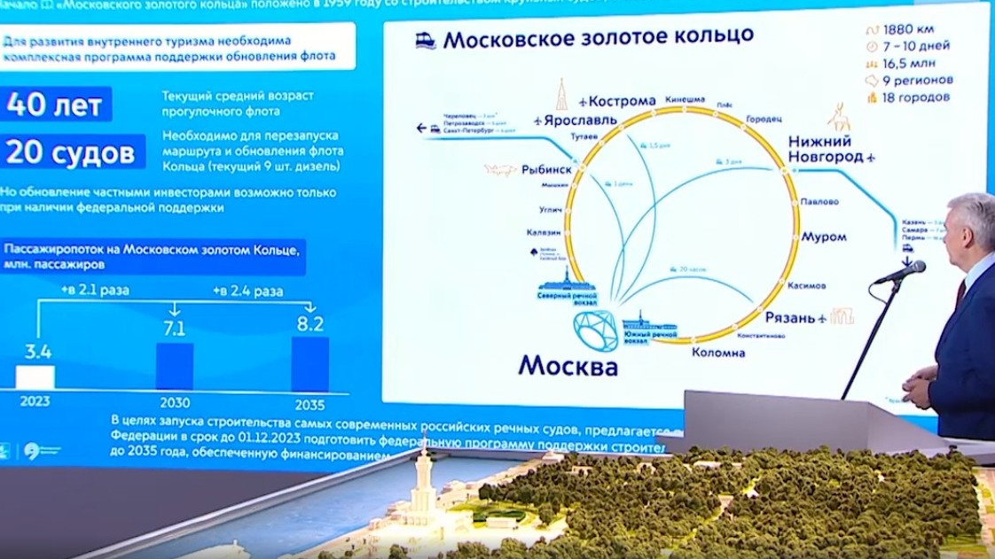 «Когда мы восстановили Северный речной вокзал и Южный вокзал, мы полностью восстановили инфраструктуру для туристического флота, – сказал мэр Москвы Сергей Собянин. – На сегодня мы возродили речное Московское Золотое кольцо, которое было создано в 1959 году. Пароходы двигались с Северного речного вокзала, проходили по Золотому речному кольцу и возвращались обратно в Москву на Южный речной вокзал».
