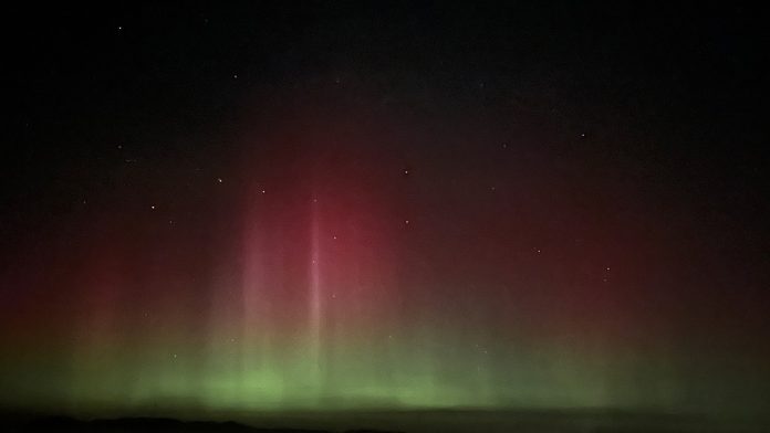 Дарья Кухарь написала, что северное сияние наблюдала недалеко от села Подлипки Касимовского района около 23.00. Фото девушка сделала на камеру мобильного телефона в ночном режиме.