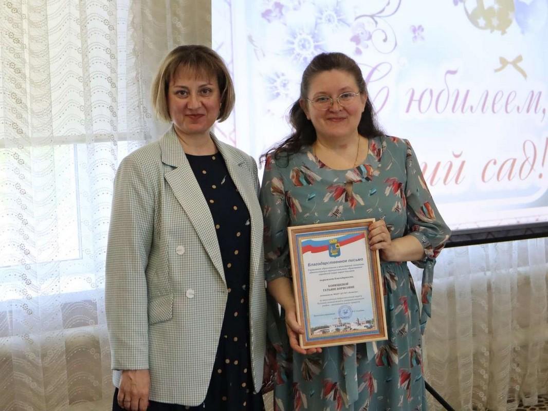 С юбилеем коллектив детского сада поздравила начальник управления образования и молодежной политики города Ирина Голубева. За плодотворный добросовестный труд большой личный вклад в обучение, воспитание и развитие детей дошкольного возраста сотрудникам учреждения вручили Почетные грамоты, благодарственные письма. Среди награжденных, заведующая Людмила Купцова, воспитатели Елена Морозова, Анна Гвоздева, Елена Столаева, Татьяна Конюшева, Галина Певцова, Татьяна Жучкова, помощники воспитателей Оксана Арипова, Надежда Маркова, Жанна Переславцева, музыкальный руководитель Елена Алексанина.