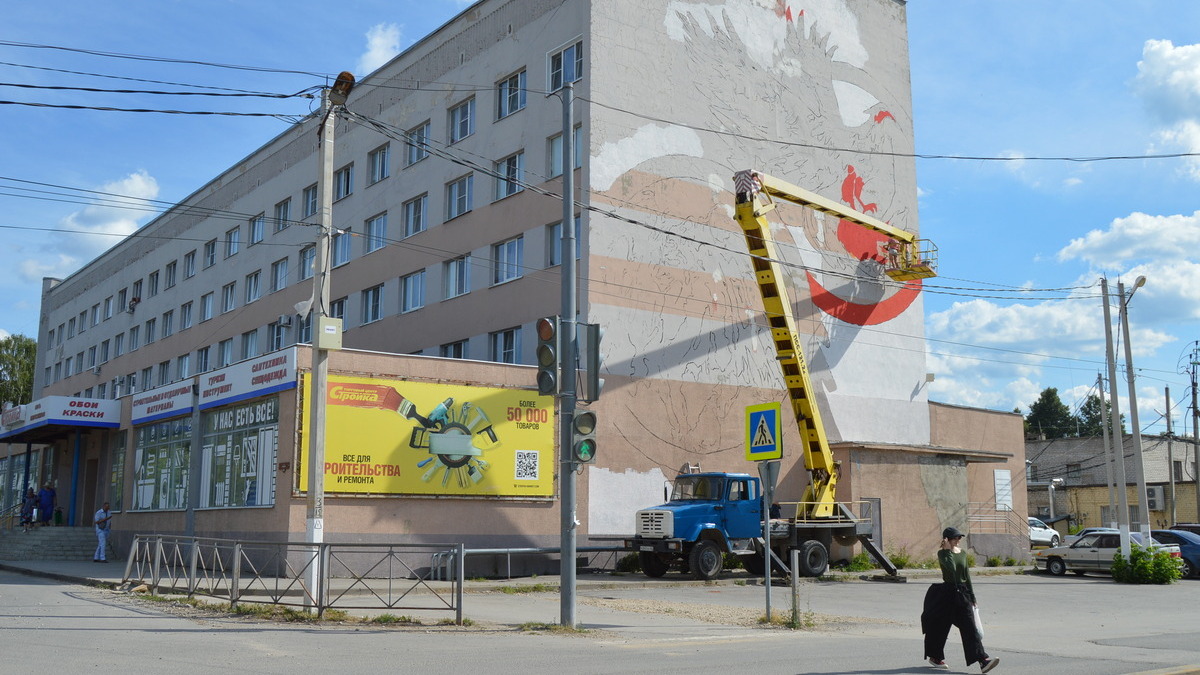 На стене дома по улице Ленина в Касимове появится мурал. Рязанские художники Александра Шаяхметова и Александр Синицын приступили к работе 8 июля.