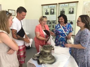 Наталья Ситникова передала новые экспонаты для музея. Директор школы Ирина Мартынова и руководитель музея Ангелина Канчурина провели для гостей экскурсию.