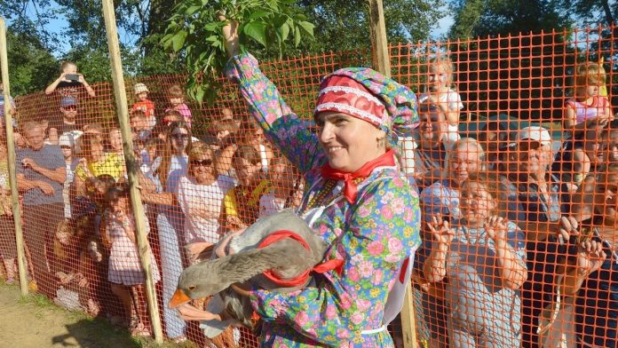 Главным событием праздника стали традиционные гусиные бега. В этом году в них участвовали восемь гусей. В итоге победил гусь Мартин. Его привезла Ирина Чукляева из Балушевых Починок.