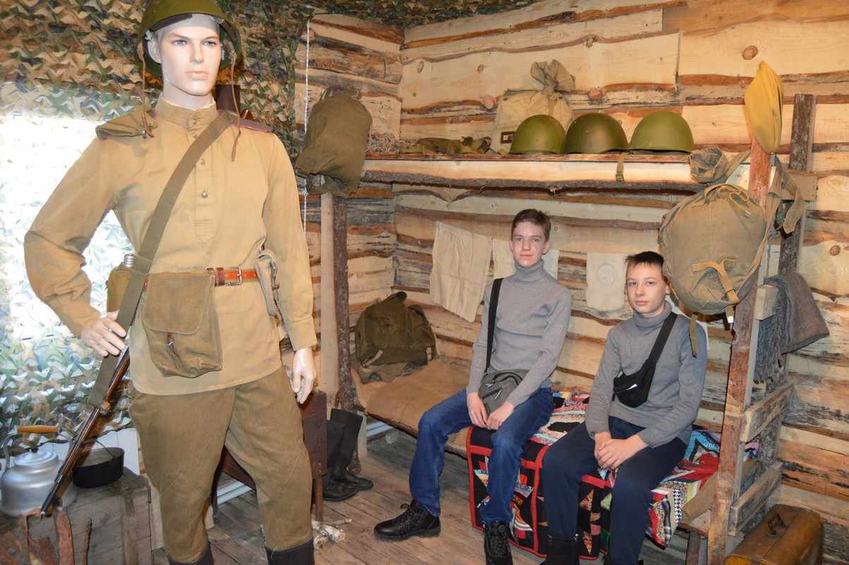 Игорь Скрипай подготовил экспозицию военной техники времен Великой Отечественной войны и специальной военной операции. Также погрузиться в атмосферу военного времени позволила и реконструкция интерьера фронтового блиндажа. Здесь представлено все необходимое для жизни солдат в полевых условиях: печь буржуйка, кровать, стол, походная посуда и другие атрибуты полевого быта. Особое место отведено оружию. На стенах блиндажа размещены учебные плакаты, по которым в пулеметном училище курсанты изучали различные виды вооружения.