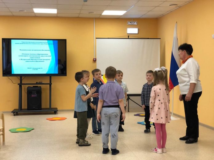 23 воспитателя из всех дошкольных учреждений округа собрались в Дмитриеве, где в 2024 году построили новый детский сад. Педагоги поделились опытом работы по применению разных технологий, методов и приемов по развитию математических представлений дошкольников. Воспитатели познакомились с играми и пособиями по формированию элементарных математических представлений дошкольников на выставке «Нескучная математика».