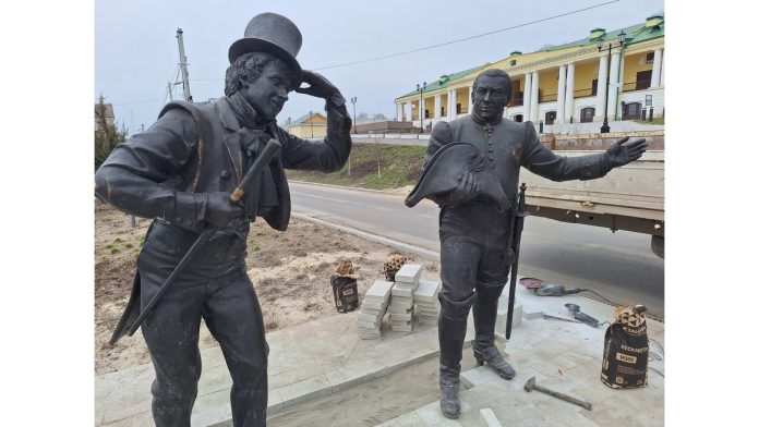 Роль городничего исполнял Анатолий Папанов. Фигуру отлили именно по его росту – 184 сантиметра. Хлестакова сыграл Сергей Мигицко (рост – 192 сантиметра). Весит каждая фигура около трех центнеров.