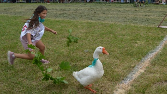 Главным зрелищем праздника стали гусиные бега. В этом году за победу боролись десять погонщиков со своими гусями. Они приехали не только из разных сел Касимовского округа, но и из Михайловского и Клепиковского районов. В упорной борьбе победу одержал гусь Джек из Гусь-Железного.