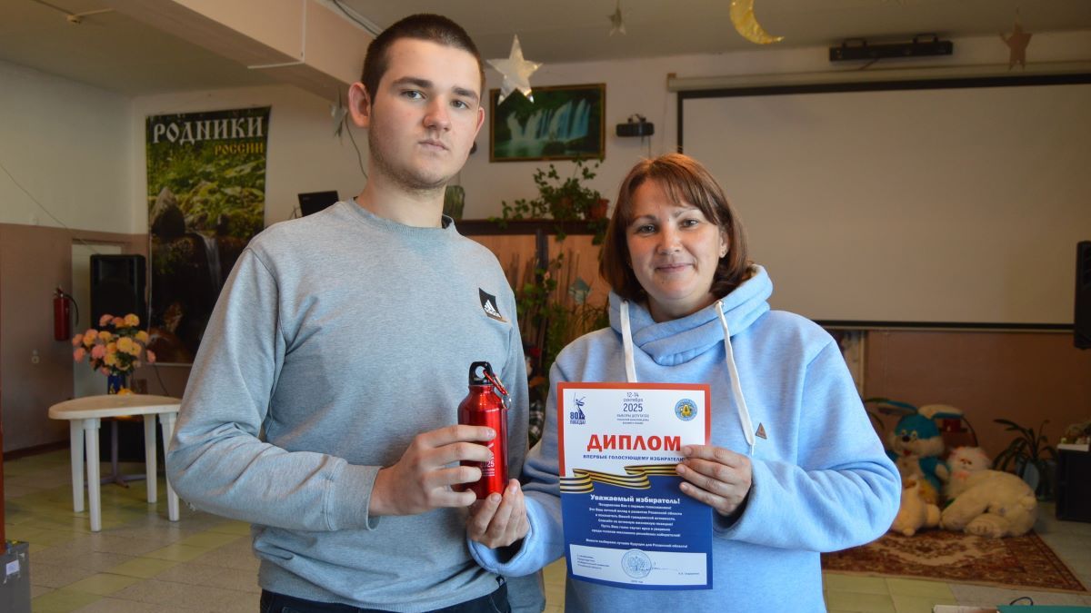 Ему и другим впервые голосующим вручают дипломы и сувениры.