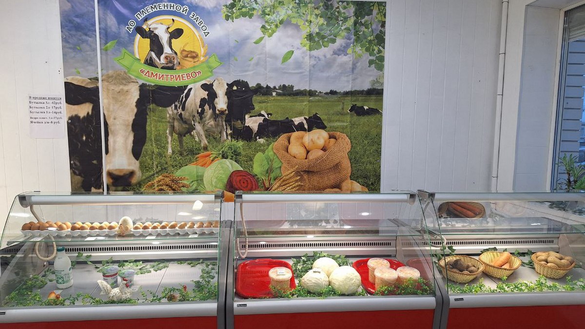 В Касимове работает фирменный магазин племзавода «Дмитриево». Как рассказали продавцы, магазин начал работать в середине января. В продаже овощи (картофель, морковь, свёкла, капуста), выращенные на полях племзавода. Здесь можно купить квашеную капусту. Также в ассортименте молоко, его привозят из Дмитриева, и яйца (племзавод «Илькино»).