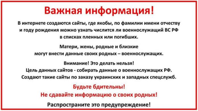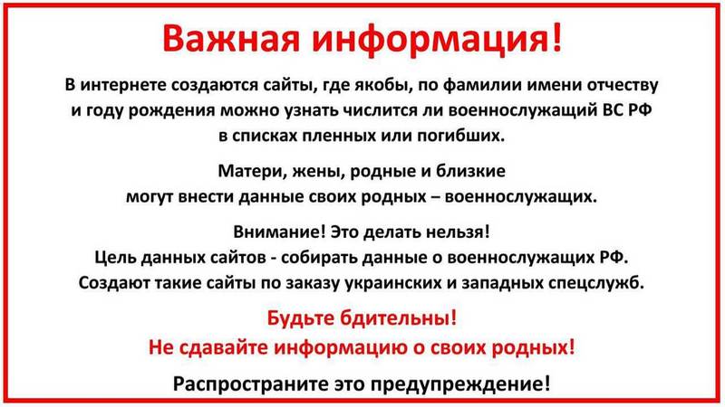 Якобы, так можно выяснить, не попал ли родственник в плен во время спецоперации на Украине. На самом деле цель – получение данных о военнослужащих. Сайты созданы за рубежом и связаны с иностранными спецслужбами. Зачастую с той же целью и похожим способом действуют и обычные мошенники.