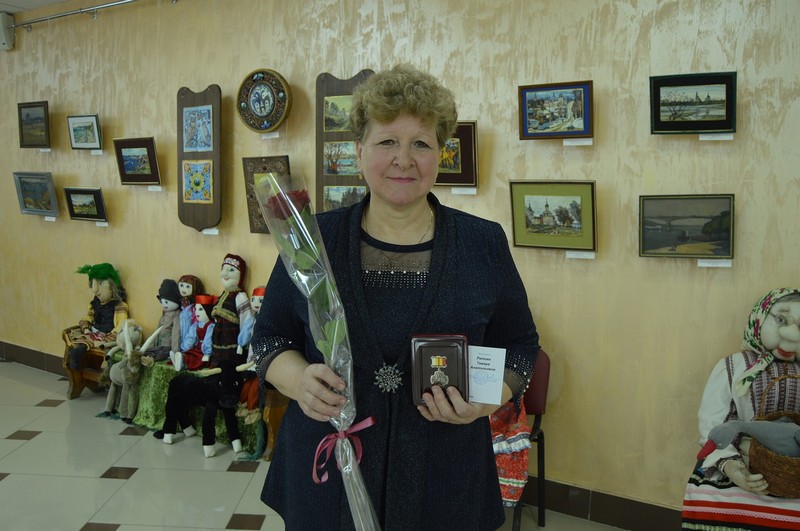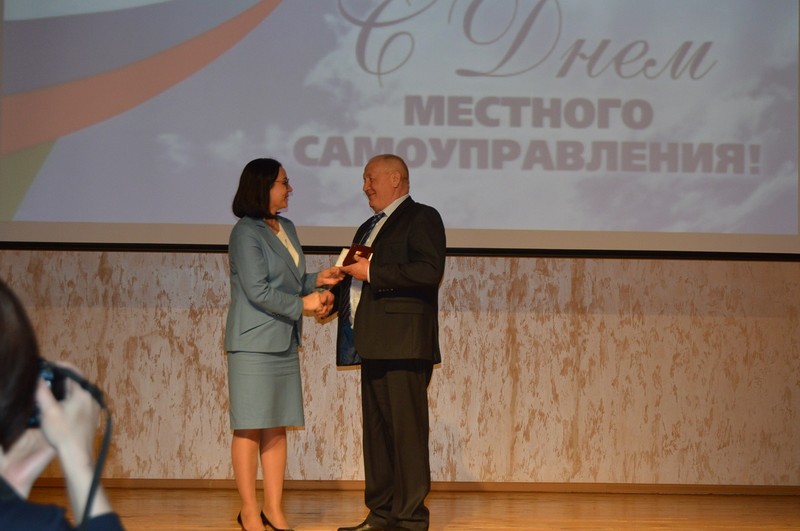 Затем гостей и муниципальных служащих пригласили в концертный зал, где началось награждение. Среди тех, кому вручили награды, – специалист Ермоловской администрации Тамара Ратова.